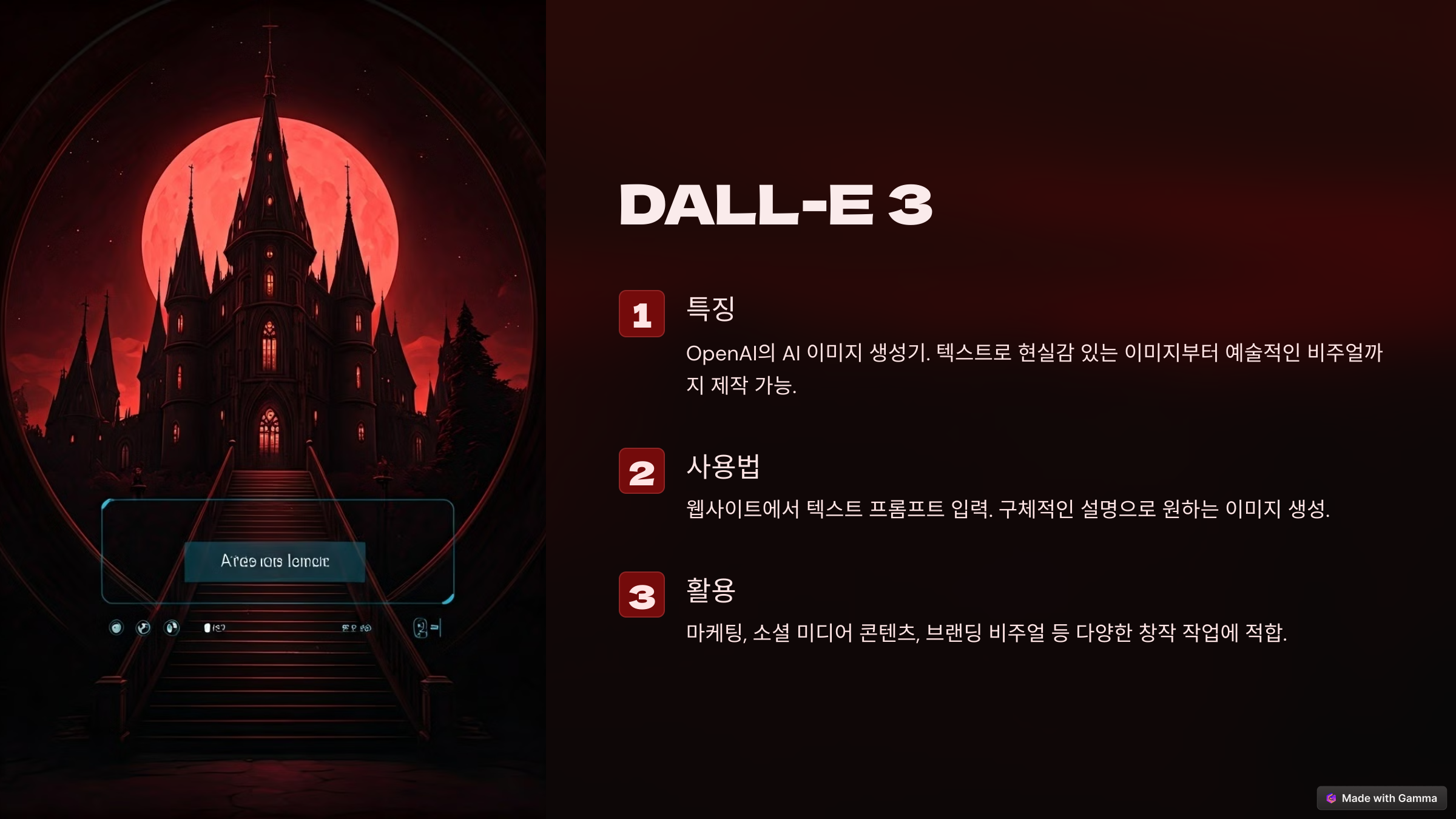 - DALL-E 3 웹사이트에 접속해 텍스트로 원하는 이미지를 설명하는 프롬프트 입력.